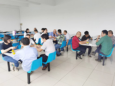 比赛队伍采取抽签方式决定,进行循环淘汰赛,分初赛、复赛、决赛进行。比赛现场,公司领导和员工同台竞技,赛场上氛围十分热闹,参赛搭档通力合作、默契配合,沉着应战。大家互相切磋牌技、相互学习,增进感情。经过层层淘汰晋级,最终,公司生产技术部乙值金翔和倪金明获得一等奖,检修班黄历虎和朱博文获得二等奖、生产技术部顾清洪和高雪荣获得三等奖。