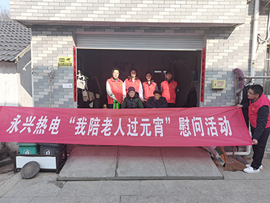 安庆村85岁村民宋正明家中,宋大爷正坐在轮椅上晒太阳,远远地看到一行人拎着油、米、牛奶等物向他家走来,他知道这是永兴热电的志愿者们来看望他了,他的老伴赶紧迎了上去,伸出粗糙的手拉着志愿者们往家里坐,这是第5个年头了,每年他们两人生日当月,永兴热电的志愿者们都会来看望他们,已经是老熟人了。正逢元宵节,这次他们还带来了汤圆,白色的荠菜肉馅,黄色的大黄米芝麻馅。他们一来,这清冷的小院立刻热闹起来,有人打扫卫生,有人帮剪手指甲,有人陪着话家常,还有人在厨房里下汤圆,一会儿,一碗碗热乎乎的汤圆就端上了桌,老两口笑开了花,自从过完年,子女上班后,就数今天最热闹喜庆了。
