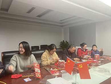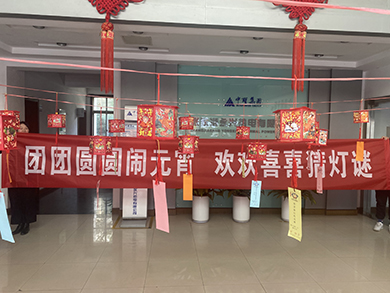 永兴热电二楼会议室里,大家迫不及待的打开了材料包,按照说明书的步骤行动起来,搭灯架、组装电子灯、挂流苏……有的自得其乐,有的两两结对,相互配合,在摸索中前进,在交流中增进感情,通过半个多小时的精心制作,一个个精美的花灯呈现在眼前,当看到自己亲手制作的灯笼系上灯谜挂在办公楼大厅中,大家乐在心头,喜上眉梢。