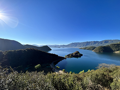 第二天一早,经历了几个小时蜿蜒的盘山公路,大家抵达了泸沽湖观景平台,这里视野非常开阔,整个湖面尽收眼底,蔚蓝的湖水、湛蓝的天空、绿树环绕的湖岸、景色优美的里格半岛,一起构成了一幅美妙的画卷。随后来到三家湾码头,乘坐摩梭人的猪槽船,湖光山色俱收眼底,旅途疲惫一扫而光。晚上,在泸沽湖畔的大落水村体验了摩梭族的篝火晚会,摩梭族的青年男女跳起了欢快的舞蹈,唱起了泸沽湖情歌,随后游客们也加入了舞蹈行列,篝火晚会在歌舞声中掀起了一个又一个高潮,呀索呀索呀啦索的喊声一浪高过一浪…