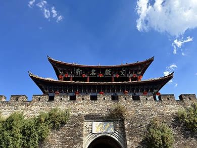 27日,大家驱车赶往背靠苍山面临洱海的大理古城,一幅“流水绕翠山,翠山抱古城”的活风景图映入眼帘,在蓝天白云的衬托下,大理古城更加温文尔雅,如一幅清新唯美的画卷,令人百看不厌。