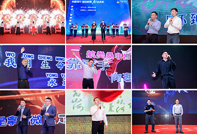 当夜幕降临,峰会晚宴在气势磅礴的击鼓表演《金马送福》中热烈开场,晚宴舞台星光熠熠,深情激昂的诗朗诵《并肩-智启新篇》道出同心共济的信念,《西海情歌》、《不再犹豫》等经典歌曲引发全场共鸣,活力四射的唱跳《大花轿》更是点燃现场气氛,穿插其间的“一马当先”、“策马奔腾”等互动游戏,让欢声笑语不断。林董更是亲自登台,与叶海涂先生共同献唱《世界第一等》,与11位项目公司总经理齐唱《我的好兄弟》,以豪迈的歌声展现了千亿球友会领导团队的蓬勃朝气与坚定信心,将现场气氛推向高潮。