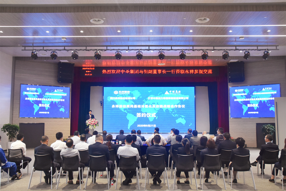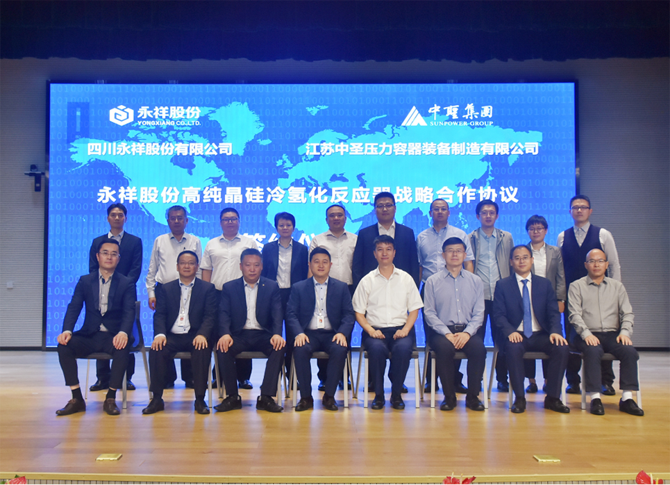9月21日,千亿球友会集团副董事长马明,千亿球友会集团高级副总裁袁自伟、千亿球友会压力容器公司总经理朱兵成、千亿球友会管道工程公司总经理向兵等一行10人到访四川永祥股份有限公司(以下简称“永祥股份”),与永祥股份签订“战略合作协议”。通威股份董事、永祥股份董事长兼总经理段雍、永祥股份董事兼首席技术官甘居富、永祥股份副总经理兼永祥新能源总经理李斌、永祥股份副总经理禚东举等出席签约仪式。