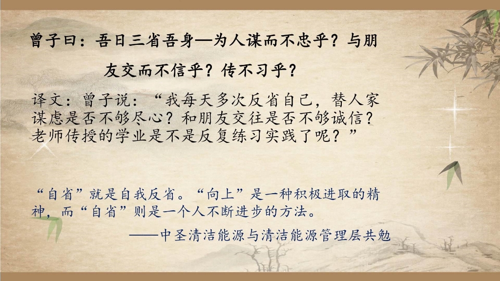 吾日三省吾身:为人谋而不忠乎?与朋友交而不信乎?传不习乎?