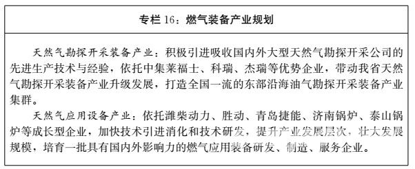 1.燃气装备。进一步完善天然气装备产业链,重点发展天然气勘探开采装备、非常规油气开采设备、油气工业环保设备及终端燃气取暖设备等高端新产品的研发和产业化进展。依托中集莱福士、科瑞、杰瑞等骨干企业,发展壮大一批具有国际影响力和竞争力的油气勘探、钻采装备企业。在原有燃气设备产业基础上,通过引进、消化、吸收国内外核心关键技术,积极培育壮大中小型燃气轮机、LNG装备制造、燃气锅炉、燃气壁挂炉等燃气装备研发制造企业,提升产业发展层次,大力推动品牌化战略发展。借鉴国外油气装备制造业的发展经验,改变只生产销售产品的传统业务模式,大力发展产品研发、制造、销售、服务综合一体化业务,拓宽业务领域,提升行业竞争力。