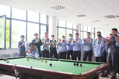 随着王总的第一杆开球,新源热电第二届职工台球大赛正式拉开帷幕。在台球桌上,参赛人员紧盯母球的眼神与他们监盘时的锐利眼神如出一辙,对手握球杆击球时细微力量地把控,和他们在进行调控操作时一样的细致准确。他们果敢而又睿智,敢于拼搏又谨慎有度,整个比赛,他们把自己的宝贵品质都展现得淋漓尽致,风采无限。