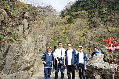 泰山,五岳之首,融雄伟壮丽的自然风光与悠久灿烂的历史文化于一体,自古就有神山、圣山、岱宗、“五岳独尊”之称誉,是四海一统,国泰民安的象征。清晨的泰安城天气晴朗,温度适宜,大家迎着朝阳向着泰山出发。抵达泰山中天门后,HSE管理部副总监高友进行活动安全宣讲,随后大家在马董的引领下开始登山。