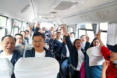 会当凌绝顶,一览众山小。登顶后,大家游览了岱顶风光,领略泰山博大精深的文化。在泰山摩崖题刻最集中的标志景点——大观峰进行了全体集结合影,喊出气势恢宏的口号:携手同行,“圣”是优秀!