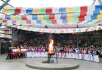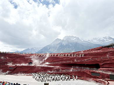 26日一早,大家到达玉龙雪山,在海拔4680米石碑处远观雪山,碧蓝天幕的映衬下,这座神山像一条银色的玉龙在作永恒的飞舞,婀娜多姿。下山后,大家来到了幽蓝静谧的蓝月谷,湖面像被山林拥抱着的一块翡翠碧玉,身处其中,洗涤了双眸,更涤荡了心灵。下午,大家观看了由张艺谋执导的大型实景演出《印象·丽江》,以雪山为背景,蓝天为幕,大地作台;500多名演员全部来自附近16个村寨的10个少数民族,没有一个专业演员;道具是常见的马鞍、背篓、方桌、酒坛等等,却构成了一幅雄伟而又和谐的画面……
