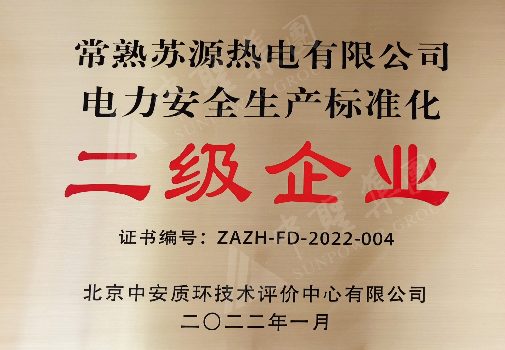 苏源热电-电力安全生产标准化二级企业
