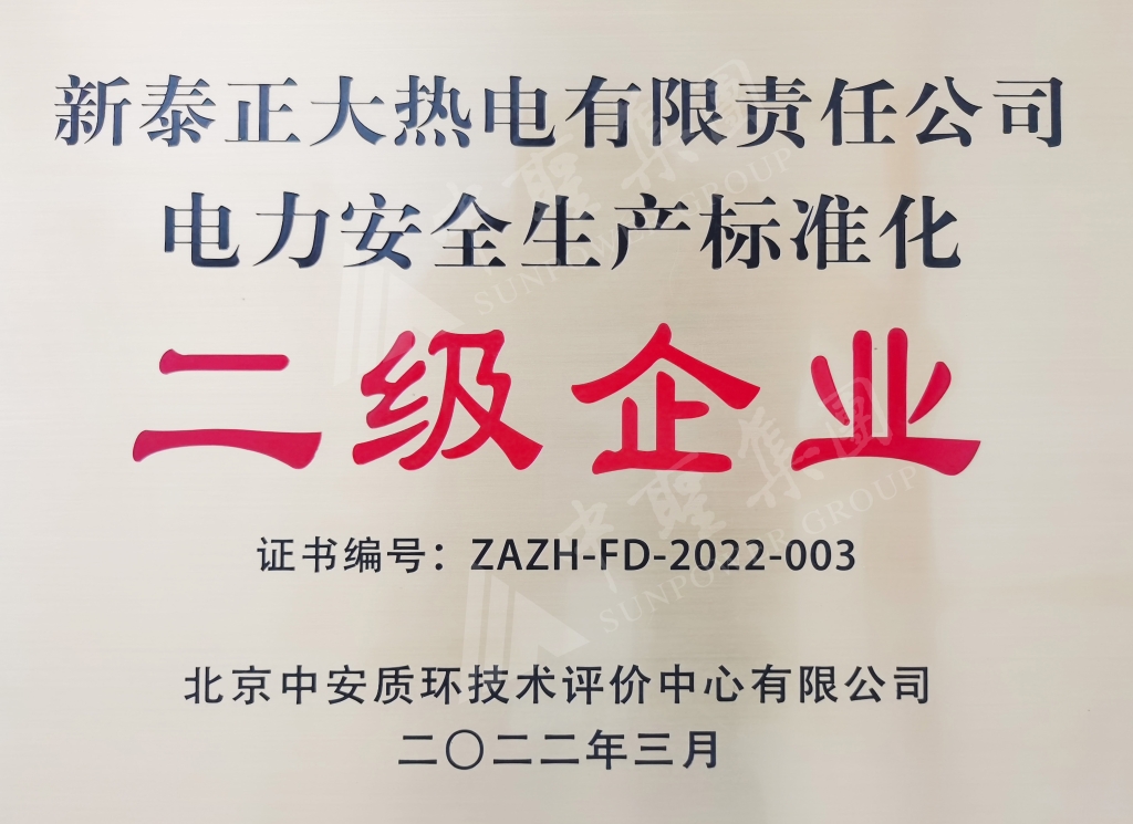 正大热电-电力安全生产标准化二级企业