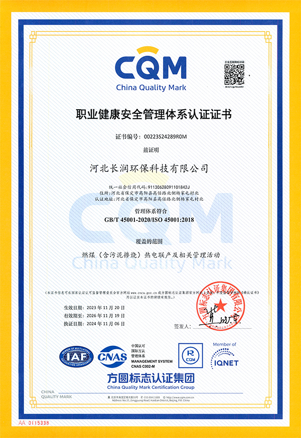 长润环保-职业健康安全管理体系认证证书