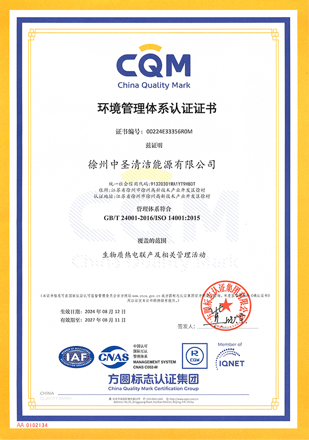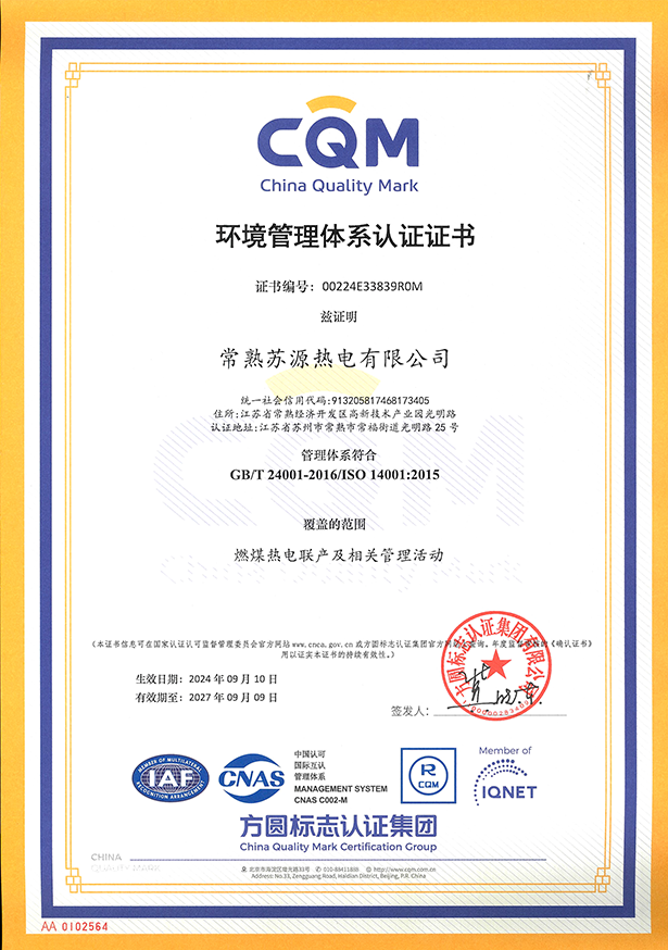 苏源热电-环境管理体系认证证书