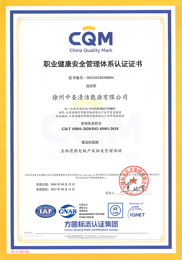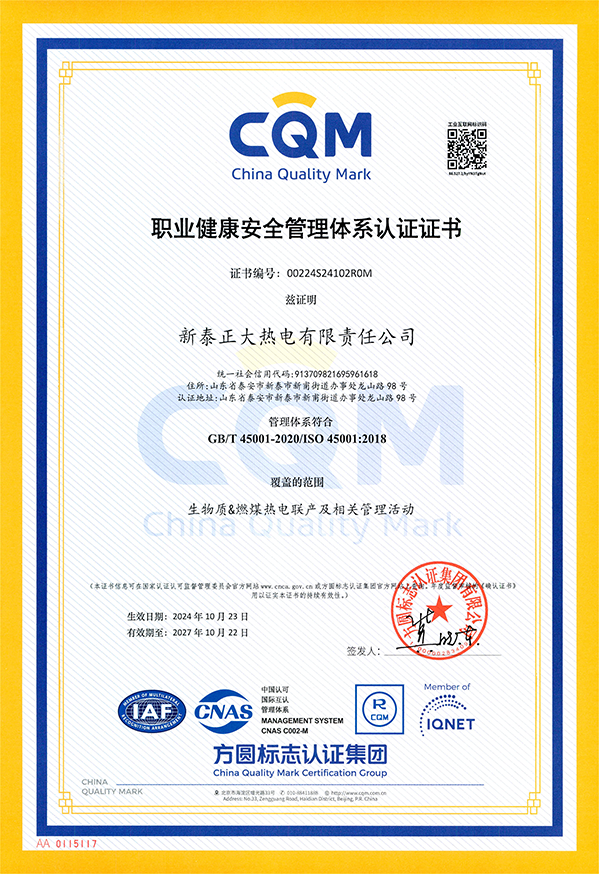 正大热电-职业健康安全管理体系证书