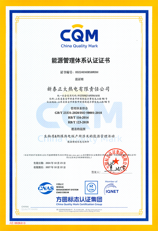 正大热电-能源管理体系证书
