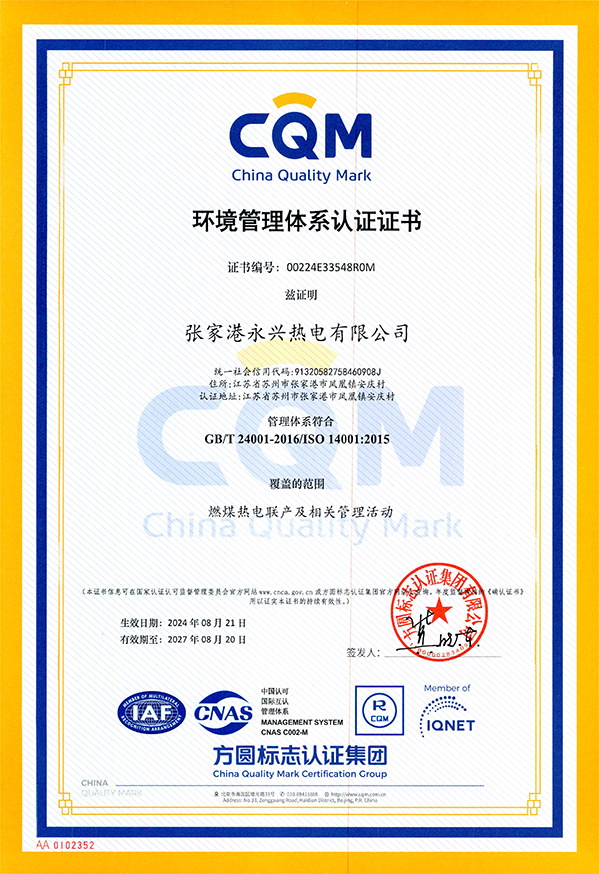 永兴热电-环境管理体系认证证书