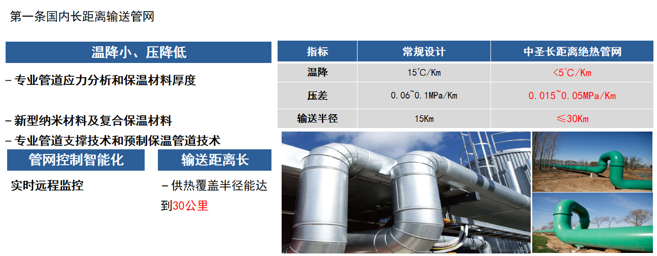 · 长输热网管理,输送半径达30km,热网接近零管损。