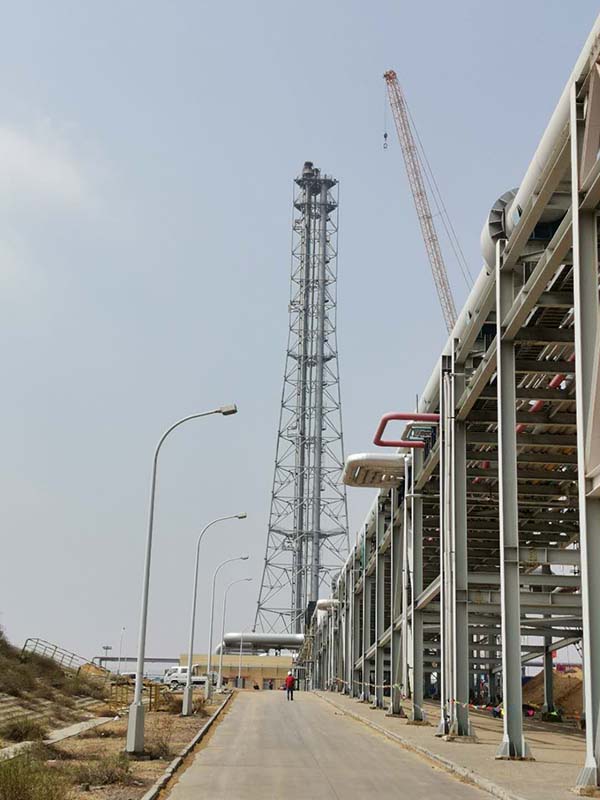 神华榆林火炬项目位于陕西省神木市清水工业园神华榆林能源化工有限公司装置区。该火炬高150米,项目现场昼夜温差大,风沙较为严重,业主要求吊车使用时间只有5天,面对超高空作业、气候恶劣及时间紧的三重难度,项目部根据现场情况及以往同类型火炬施工经验,反复研究,最终确定吊装最佳方案,保证了一次吊装就位,赢得业主单位及监理单位的高度好评。