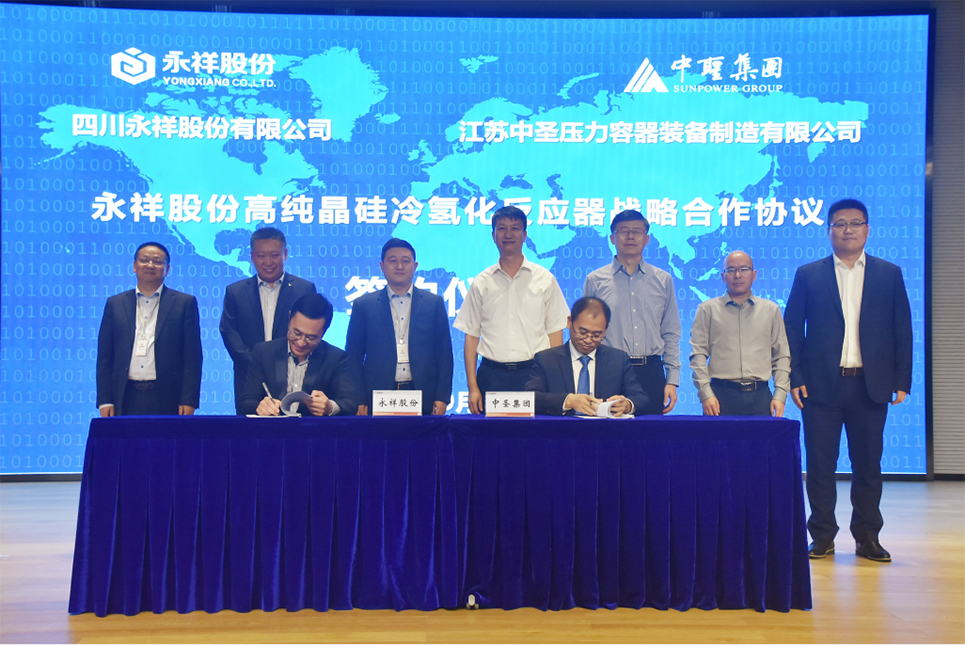 9月21日,千亿球友会集团副董事长马明,千亿球友会集团高级副总裁袁自伟、千亿球友会压力容器公司总经理朱兵成、千亿球友会管道工程公司总经理向兵等一行10人到访四川永祥股份有限公司(以下简称“永祥股份”),与永祥股份签订“战略合作协议”。通威股份董事、永祥股份董事长兼总经理段雍、永祥股份董事兼首席技术官甘居富、永祥股份副总经理兼永祥新能源总经理李斌、永祥股份副总经理禚东举等出席签约仪式。