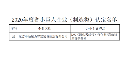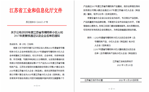 日前,江苏省工业和信息化厅发布了《关于公布2020年度江苏省专精特新小巨人和2017年复核通过认定企业名单的通知》(苏工信中小[2021]27号),江苏千亿球友会压力容器装备制造有限公司(以下简称:千亿球友会装备制造公司)成功入选江苏省专精特新小巨人企业(制造类)名单。