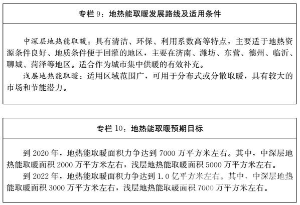 积极推动中深层地热能取暖。根据地热能资源分布及供热市场需求,在“取热不取水”的原则下,采用“采灌均衡、间接换热”或“井下换热”的工艺技术,在鲁西北、胶东、鲁中(西)南等地热资源相对富集地区,采用“集中式与分散式相结合”的方式推进中深层地热能取暖。