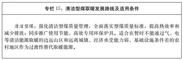 6.有序推进清洁型煤取暖。清洁型煤取暖与其他清洁能源取暖方式相比成本相对较低,供应保障相对稳定,是天然气、电能等清洁能源取暖暂时难以推广使用的边远山区和经济条件相对薄弱的农村地区过渡替代散烧煤取暖的方式,重点利用清洁型煤(型煤、兰炭、优质无烟煤)+环保炉具等方式提高供暖用煤质量,尽可能的减少供暖污染物排放。