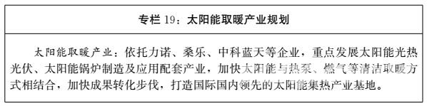 4.太阳能集热产业。依托济南、德州、临沂、泰安、潍坊、枣庄等市太阳能产业优势,发挥力诺、桑乐等企业的引领作用,提升太阳能光热利用水平和产品的知名度。开展“太阳能+”清洁取暖技术系统研究与工程推广应用,积极促进太阳能与其他能源融合发展,提升产业智慧化水平和转换效率,进一步巩固和提升我省太阳能集热产业在全国的龙头地位。