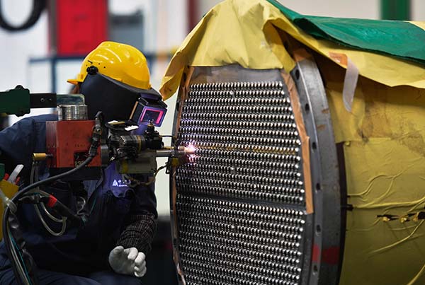 2月26日,南京江宁高新区的千亿球友会集团生产车间内,产业工人正在进行换热器壳体焊接。作为国家火炬计划重点高新技术企业,公司主要生产大型压力容器、换热器等产品,产品主要销售至俄罗斯、匈牙利等一带一路沿线国家。据了解,目前该公司整体复工率达83.5%,每一位产业工人都会在门口进行体温测量,戴好口罩。同时,企业原材料供应充足,可以满足当前海内外订单项目正常生产。