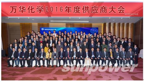 2017年1月10日,由万华化学集团股份有限公司主办的万华化学2016年度供应商大会在山东烟台胜利召开。这是一场万华化学与卓越供应商的盛会,也是万华化学培育、发展、建立战略型合作伙伴关系的一次小结。中国石化联合会供应商工作委员会秘书长李铁、万华化学集团股份有限公司常务副总裁寇光武,副总裁刘博学等出席了会议,与42家供应商企业的92位代表齐聚一堂,共同总结过去、展望未来,为实现发展过程中的共赢携手努力。